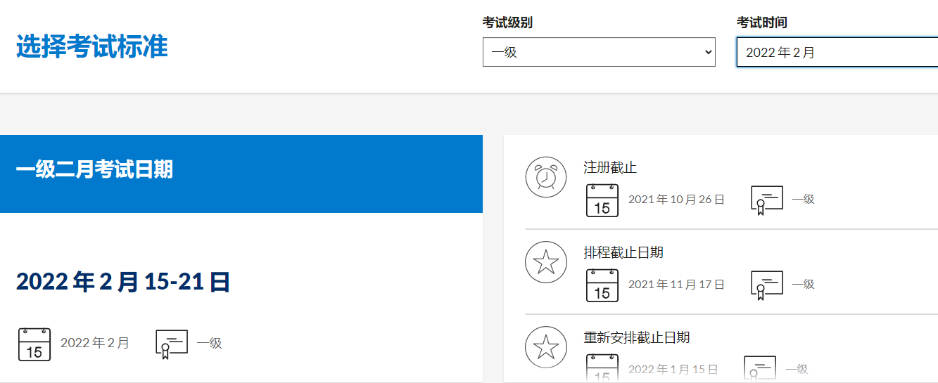 CFA协会计划安排22年CFA一级考试将于2月、5月、8月、11月进行,详情如下: