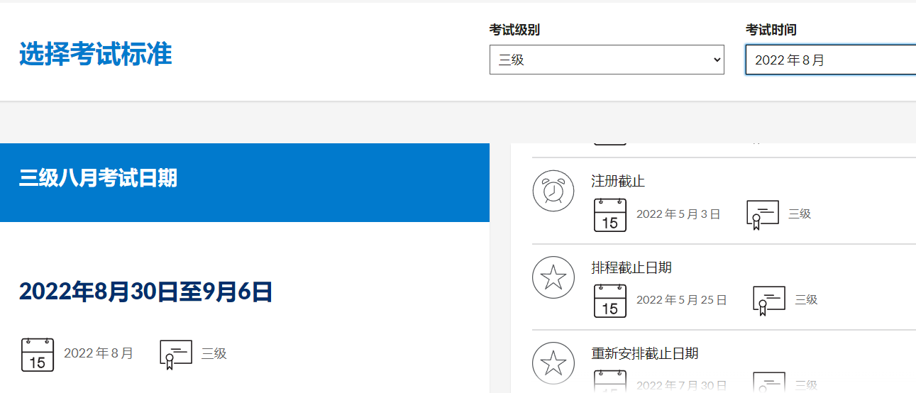 在2022年CFA三级考试有两次考试安排,分别是在5月和8月,如下: