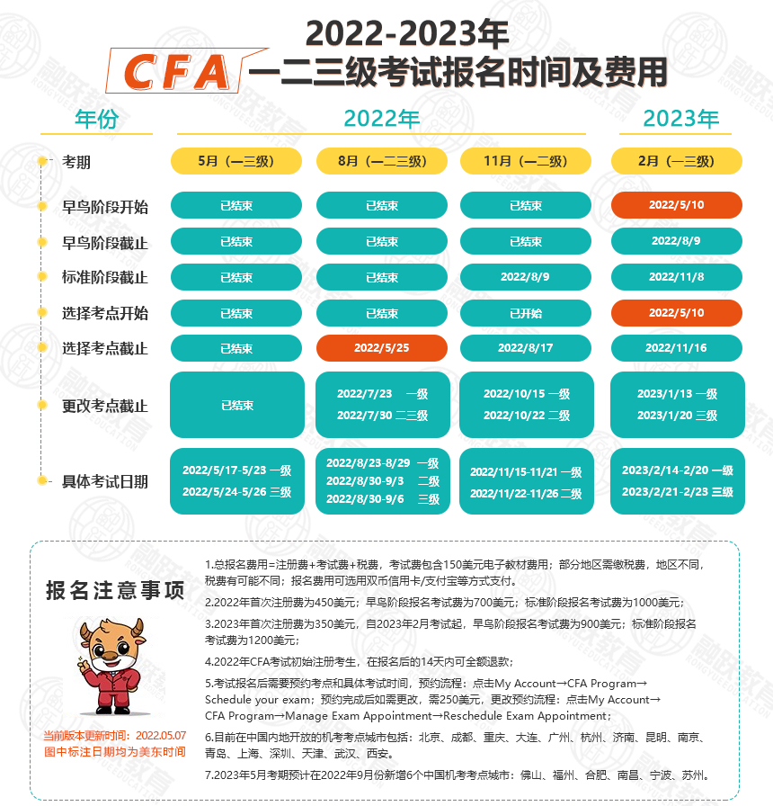 2022年5月CFA报名: