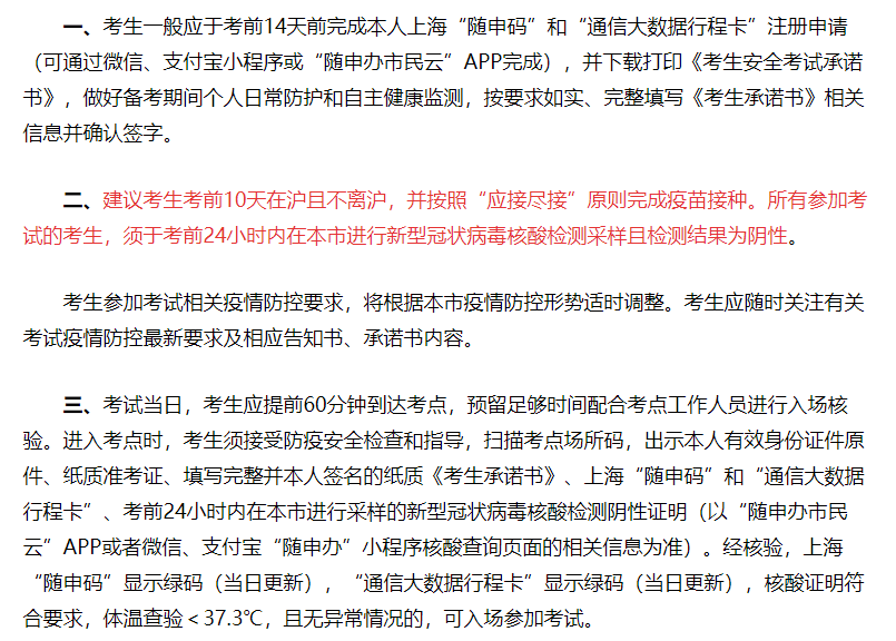 7月30日上海已经进行了事业单位考试,具体的《上海市2022年事业单位公开招聘笔试考生疫情防控告知书》如下: