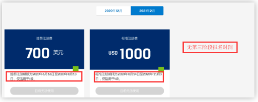 二阶段报名时间:2020年8月14日至2020年11月3日,报名费用为:1000美元;