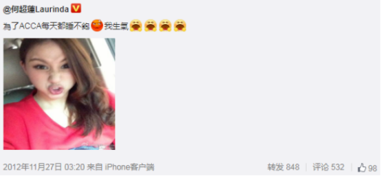 我想告诉你的是,即便是在富有的家世,也是有自己的本领去争取的,例如最近比较热的话题就是香港赌王何鸿燊,今天不是讲他,而是他的女儿何超莲,她的父亲资产高达5000亿,何超莲也在不断的提升自己,在2012年的时候发微博说正在考ACCA!