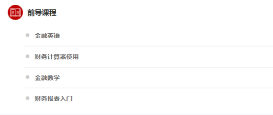 什么是CFA前导课程呢?就是涉及到的CFA知识的数学、英语、财务、计算器等知识,别看这些不是考试的重点,但是它关联这考试,如果你的英语不好的话,你看不懂考题,你数学不好怎么计算,有些还是大量的计算公式还要用到计算器,不会用你怎么节约考试时间呢?所以前导课是必要的!