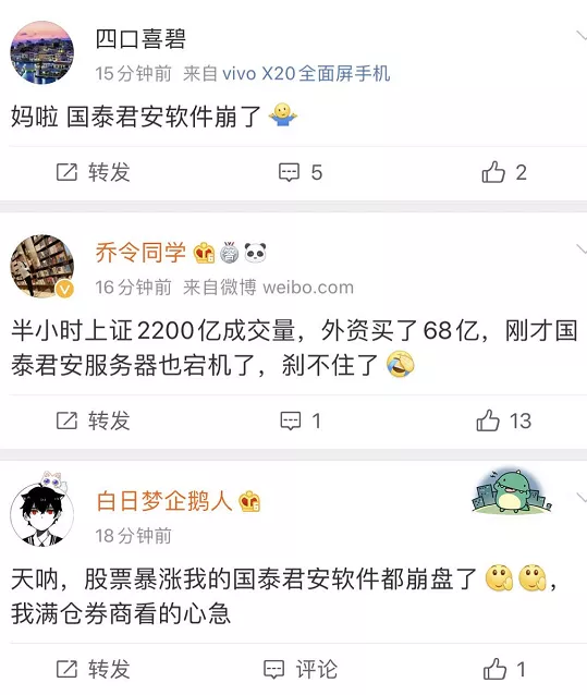 股市太火爆,股民、基民的热情把券商app、基金app的服务器都挤爆了。有网友反馈称,部分券商app交易甚至出现了短暂的迟滞、堵单。