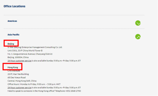 万宜大厦23楼 办公时间:星期一至星期五,上午9:00 –下午5:00 HKT 24小时客户服务 美东时间周日5:00 pm至周五5:00 pm也可以 与香港办公室的人通话