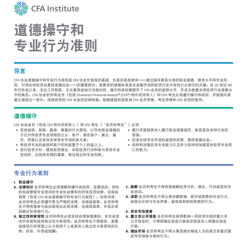 点击下载【CFA道德规范和专业行为准则】访问密码:86uk