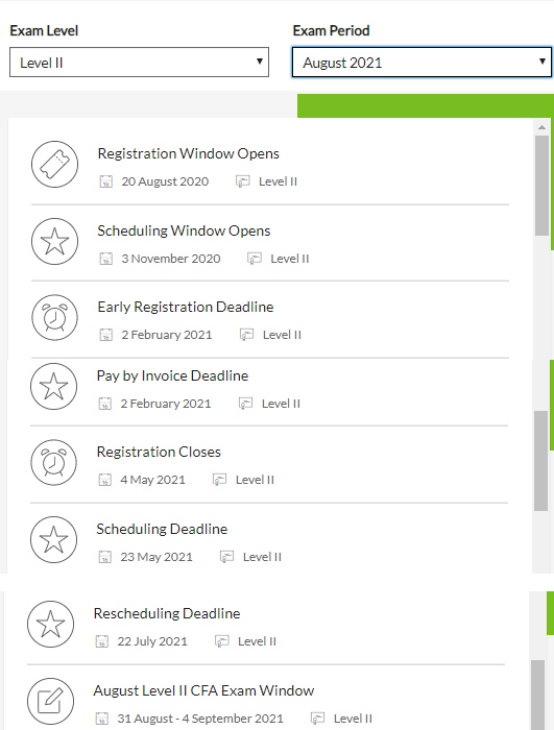 我们知道2021年CFA8月份是考CFA一级和二级,我们先看看2021年8月CFA一级的报名时间!