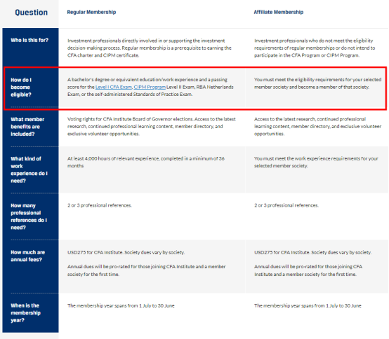 我们可以看到CFA协会规定的是考生是需要通过CFA一级或者二级才能成为CFA会员!所以,不是所你报名了CFA考试就可以成为CFA会员的,需要考生通过一级考试才能申请CFA会员,那申请会员需要交费用吗?