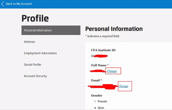 关于个人信息修改: