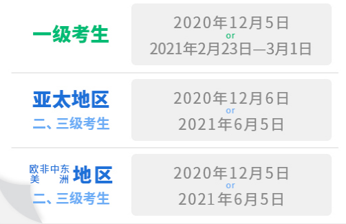 2020CFA二级和三级考生: 2020年12月6日、2021年6月5日