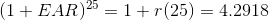 (3)对于投资期限长于一年的投资,通常把有效年利率作为年收益率。如上表,持有期25年的投资增长了4.291 8(也就是1+3.291 8)。所以有效年利率可以表达为: