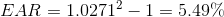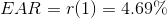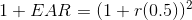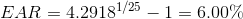 有效年利率(effective annual rate,EAR):指在按照给定的计息期利率和每年复利次数计算利息时,能够产生相同结果的每年复利一次的年利率。