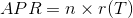 短期投资利率常用年化百分比利率APR来表示,一年有n=1/T期,每期利率为r(T),则年化百分比利率是把当前收益率(日收益率、周收益率、月收益率)按单利换算成年从而得出的收益率。